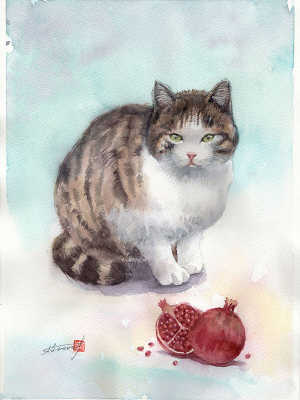 渡辺朝香「バラと酸漿と江戸切子」A4 水彩