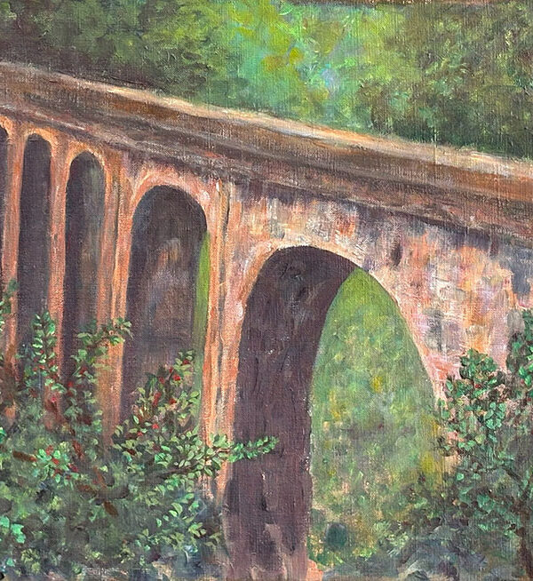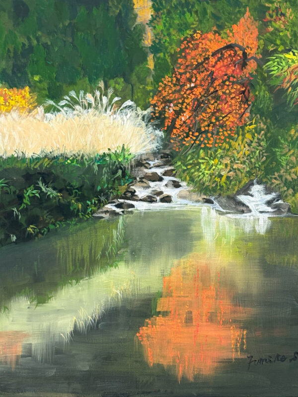 渋谷ふみ子「秋の谷川」F8 アクリル
