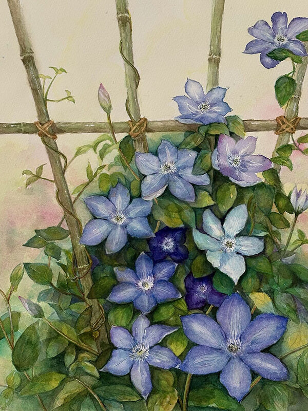 平松和代「クレマチス」F6水彩