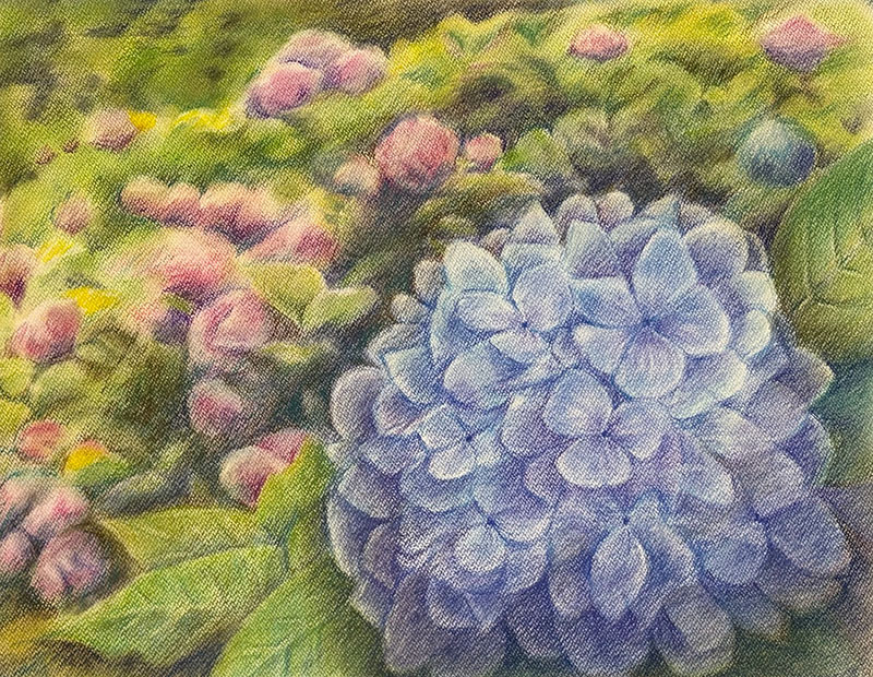 大橋真奈巳 - 大橋真奈巳「ブルーのあじさい」F6パステル
